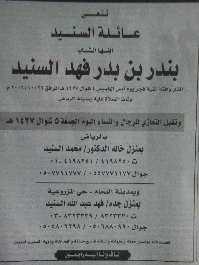 صفحات بندر بن بدر السنيد (رحمه الله)